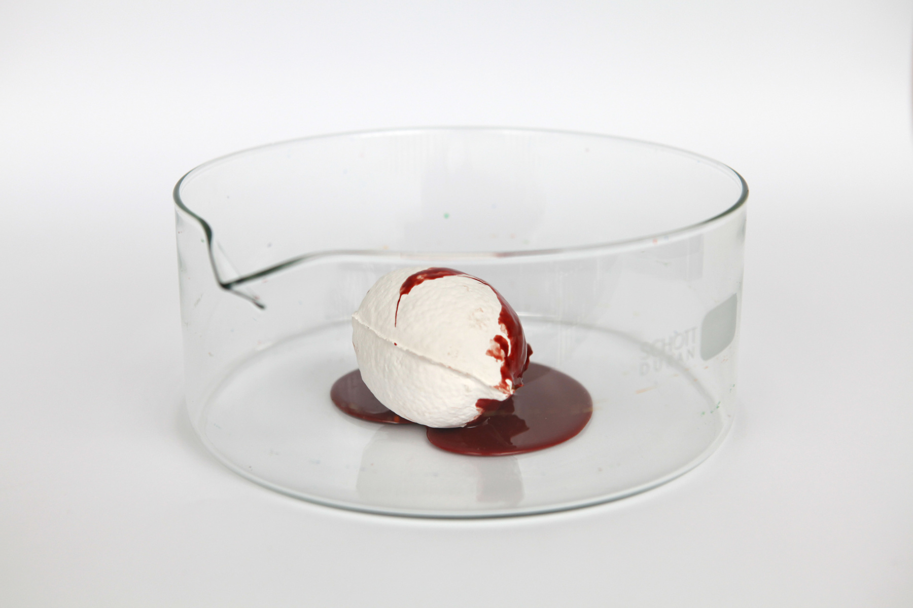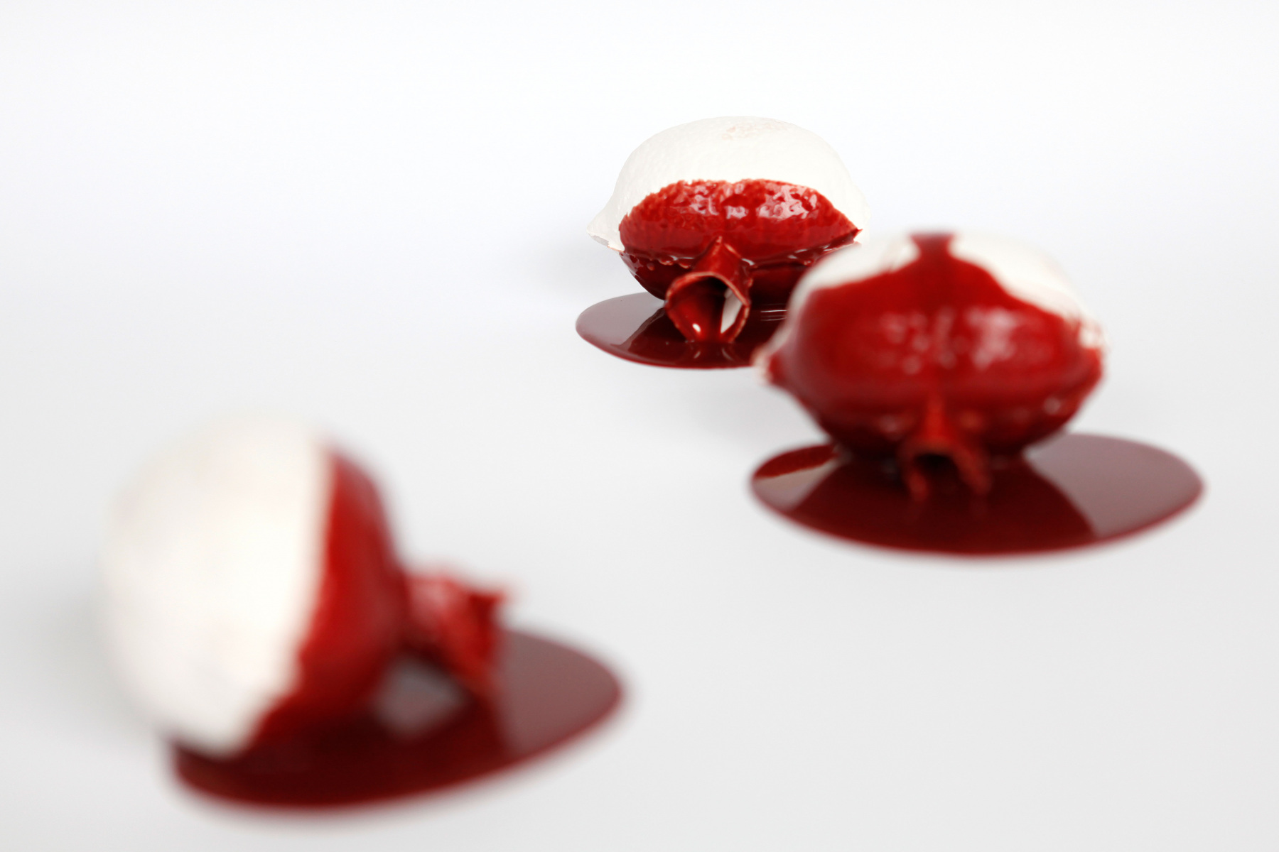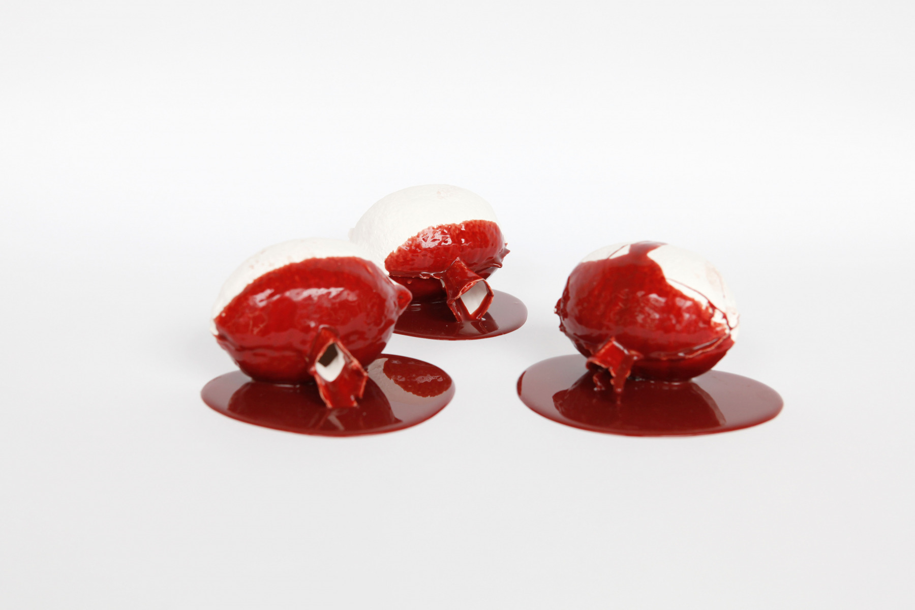 Sculpture: once-fired porcelain, blood-red silicone, diameter 13 cm each, 2013.