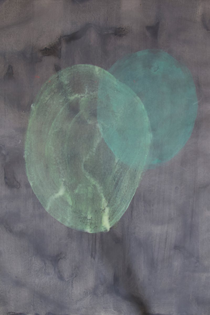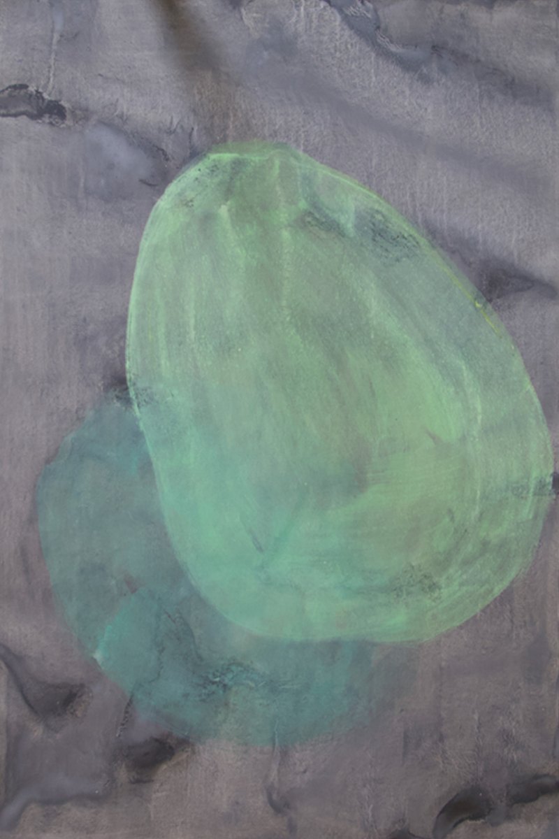 The Cell series explores the interplay of form, transparency, and organic structures. The soft, overlapping color fields resemble microscopic views of living organisms — cell membranes touching, merging, and separating again. Through fluid transitions between layers, a meditative depth emerges. The gentle green tones against a dark background enhance the impression of biological processes: growth, division, transformation. The diffuse, almost floating quality of the forms invites reflection on the boundaries between the visible and the invisible — what our eyes perceive and what remains hidden. These works are not only a study of structure and transparency but also a reflection on life itself — its fragility, adaptability, and continuous movement.
