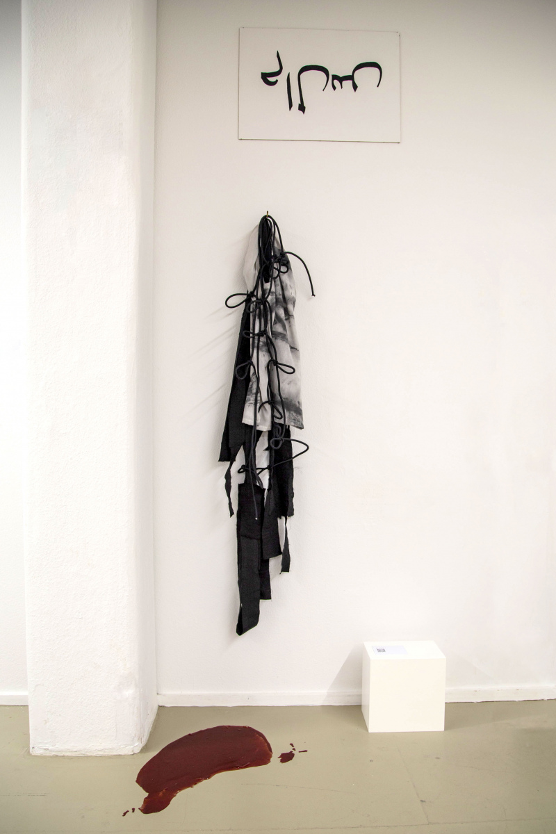 The artwork Malas explores the spiritual connection between Judaism and Islam. At its core is a prayer piece designed to be suitable for both religions. It incorporates elements of a prayer garment, a prayer shawl, and prayer straps, all intertwined.