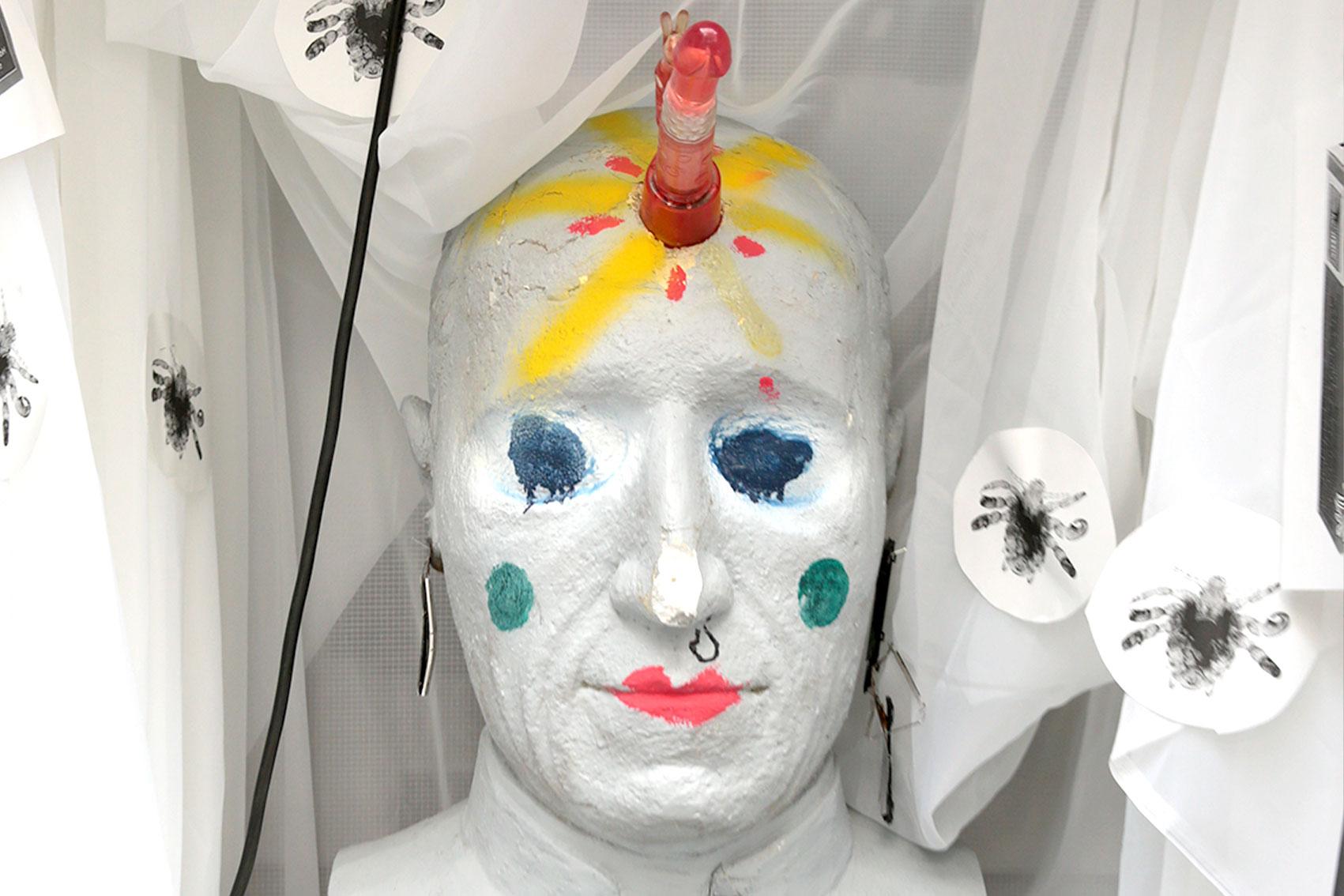 The artwork can be interpreted as a critical reflection on mechanisms of social exclusion and discrimination, deliberately provoking the viewer while encouraging them to question their own patterns of thought. Its visual complexity and subversive humor evoke parallels to diagrammatics, a method that seeks to visualize complex relationships or structures in unconventional ways. Diagrams often disrupt classical orders and facilitate thinking beyond linear systems— an approach that is palpable in this installation.
